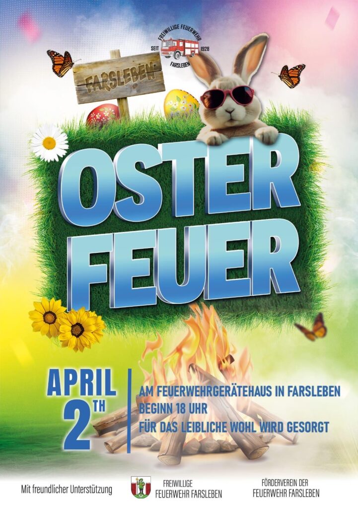 Osterfeuer der Ortsfeuerwehr Farsleben am Feuerwehrgerätehaus, Beginn: 18 Uhr