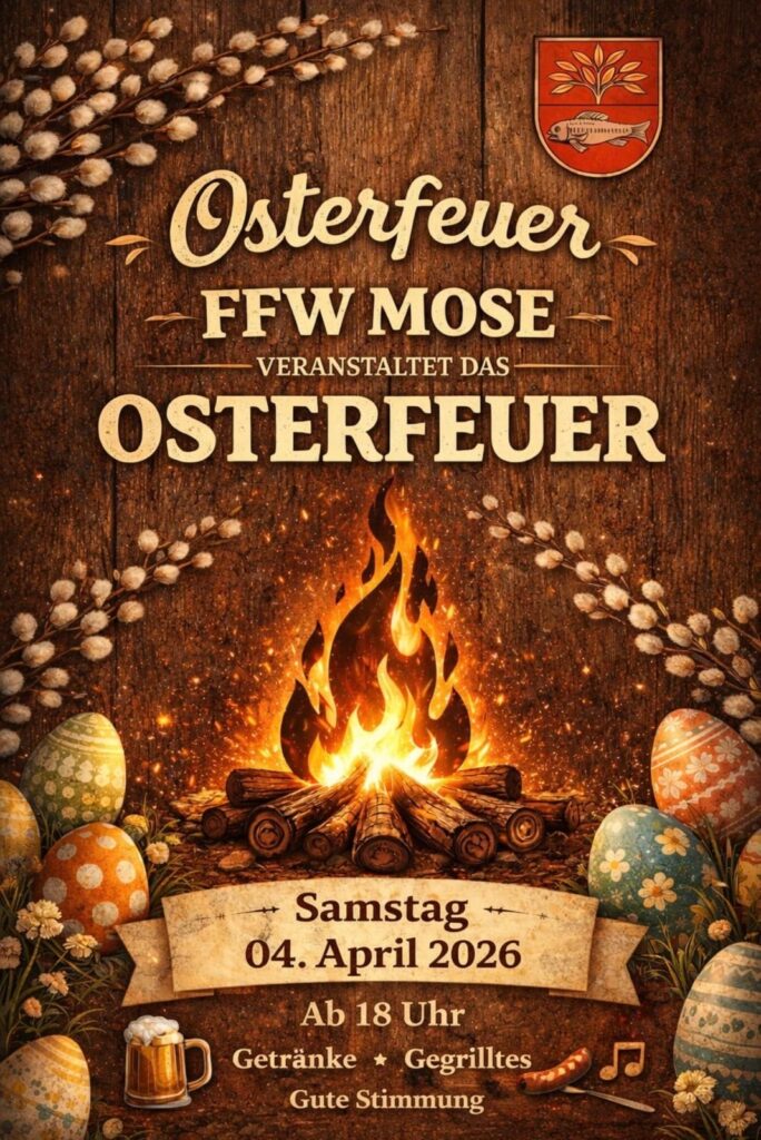 Osterfeuer der Ortsfeuerwehr Mose am Feuerwehrgerätehaus, Beginn: 18 Uhr