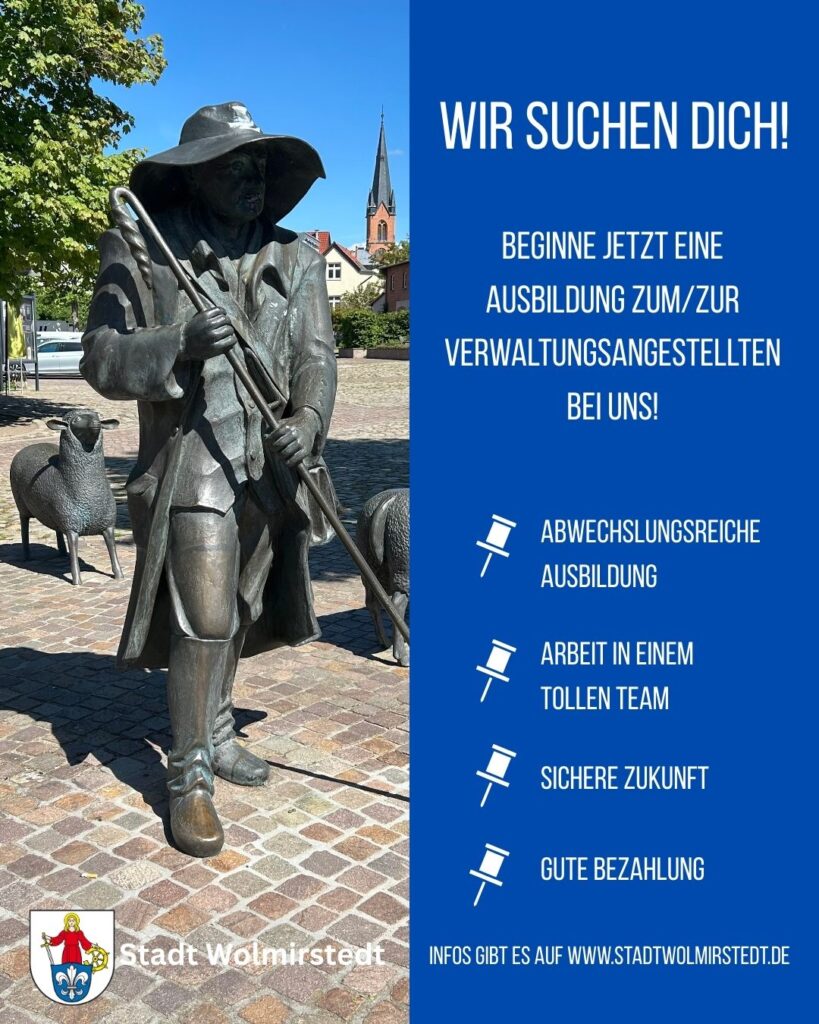 Die Stadt Wolmirstedt sucht wieder neue Auszubildende zum Verwaltungsfachangestellten, die ab 1. August 2026 für drei Jahre in der Stadtverwaltung lernen möchten.