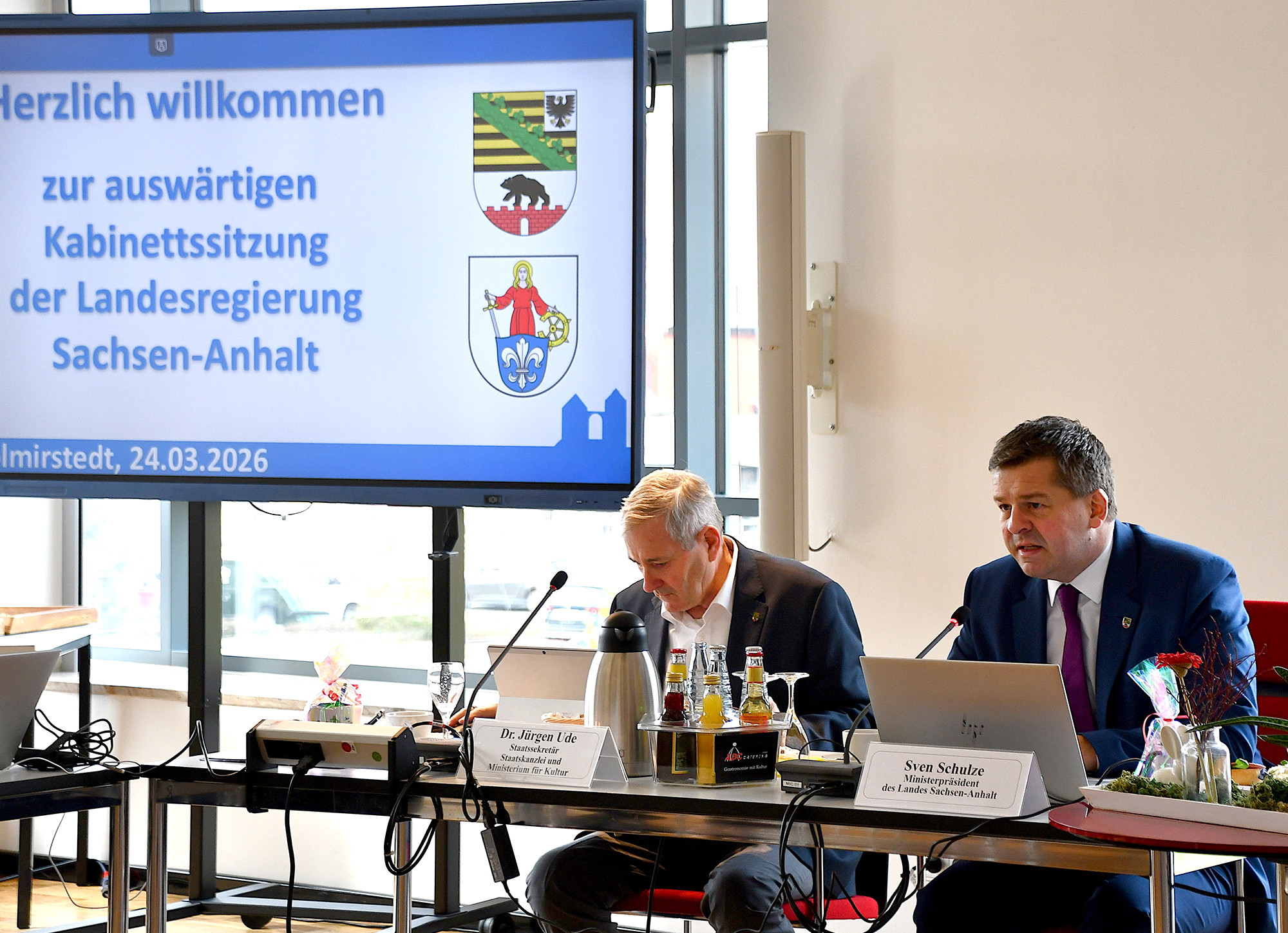 Die Landesregierung von Sachsen-Anhalt hat sich am Dienstag, 24. März 2026, zu einer auswärtigen Kabinettssitzung in der Stadt Wolmirstedt getroffen. Unter der Leitung des Ministerpräsidenten Sven Schulze besprachen die Ministerinnen und Minister neben allgemeinen auch regionale Themen. In diesem Zusammenhang beschäftigten sie sich unter anderem mit der infrastrukturellen, wirtschaftlichen, sozialen und kulturellen Entwicklung in der Stadt Wolmirstedt sowie im Landkreis Börde.