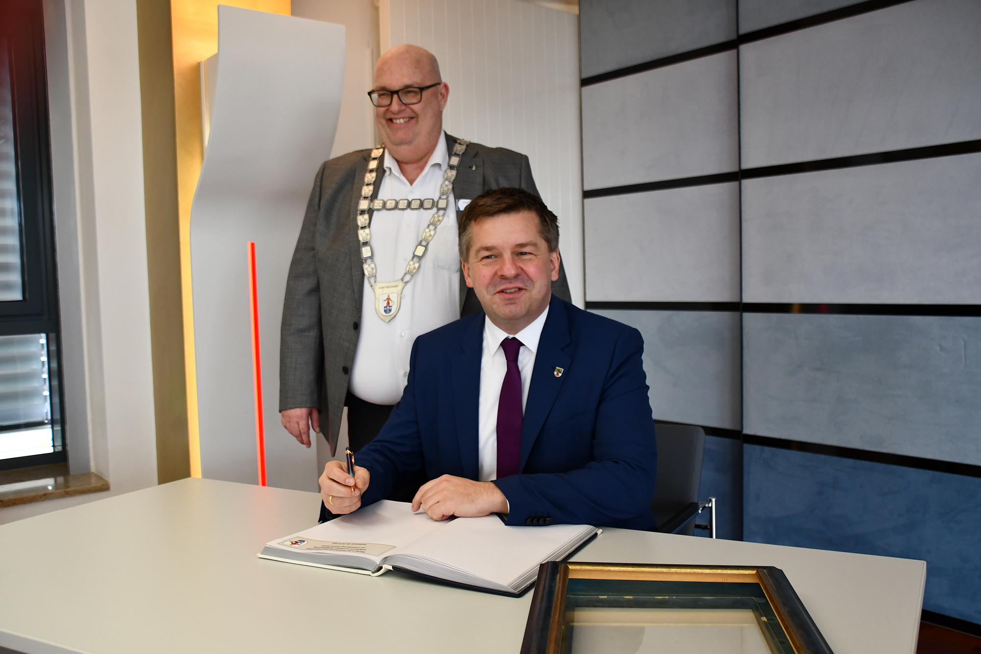 Auch die Schaffung eines naturnahen Weges an der Ohre sowie ein Radweg vom zukünftigen Stadion über die Ohre bis zum Jersleber See waren Wünsche, die der Wolmirstedter Bürgermeister an die Landesregierung herantrug. Die auswärtige Kabinettssitzung nutzte er außerdem dafür, auf die Situation in zwei Ortsteilen von Wolmirstedt aufmerksam zu machen. Die Anwohner in Farsleben und Mose sind erheblichen Belastungen ausgesetzt, erklärte Mike Steffens. Sie haben ein Umspannwerk und auch eine hohe Verkehrsbelastung durch die Landesstraße 44 direkt vor der Haustür. Außerdem häufen sich für beide Ortschaften die Anfragen für Batteriespeicher.