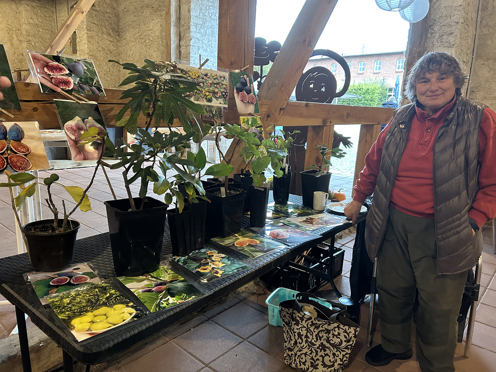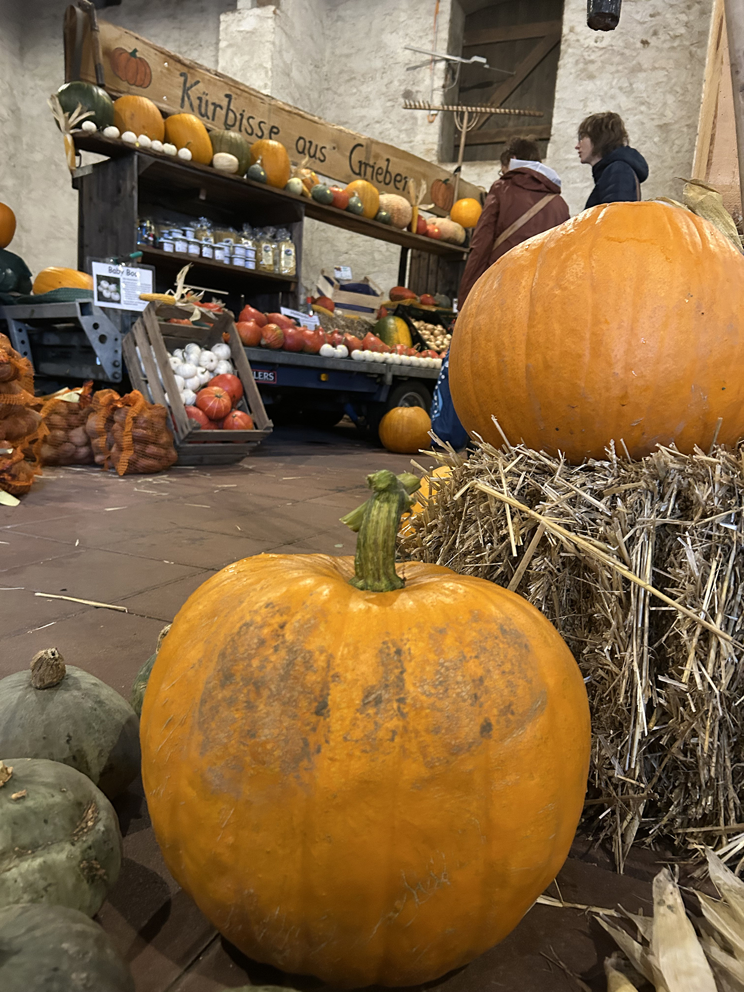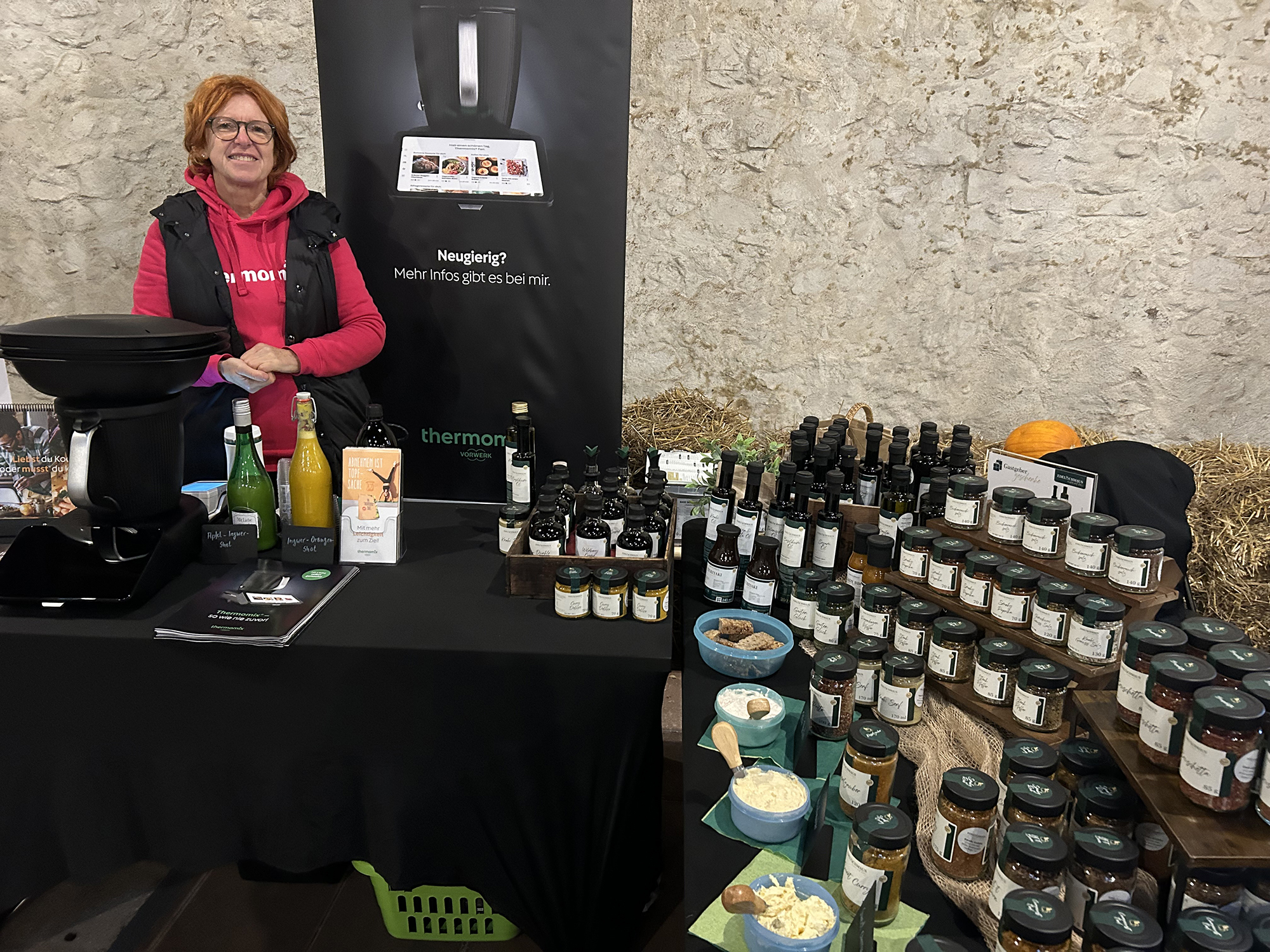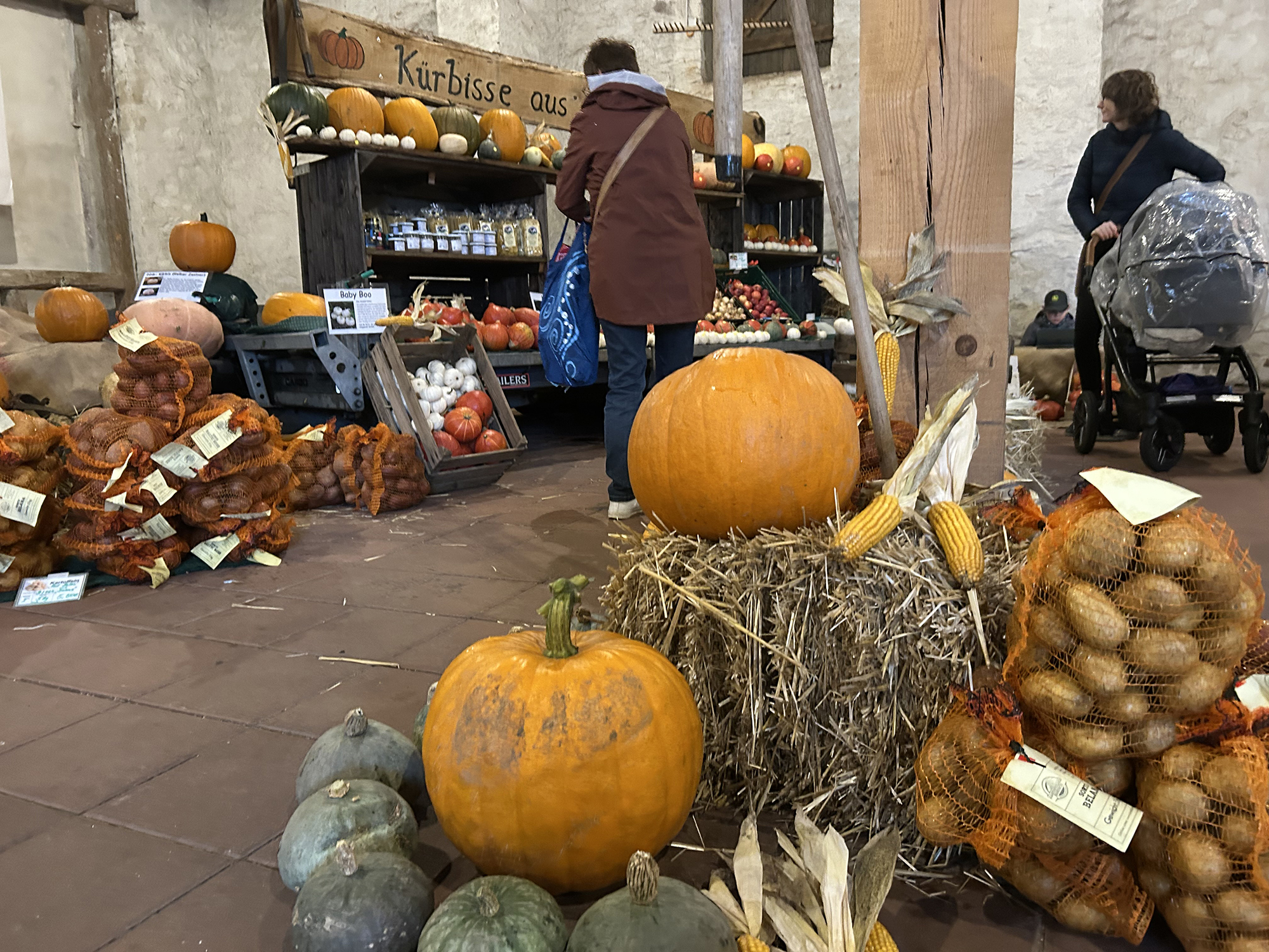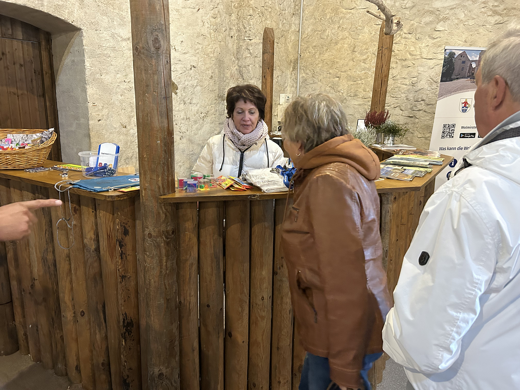 Deshalb verlegten die Verantwortlichen des Rathauses den Markt kurzerhand in die Museumsscheune, in der noch einen Tag zuvor ein Gemeinschaftssingen zum Tag der Deutschen Einheit stattgefunden hatte. „Das war die beste Entscheidung, so müssen wir nicht im Regen stehen. Unsere Waren hätten nicht nass werden dürfen“, kommentierte eine Händlerin das Geschehen. Zwar war es eine kleine logistische Meisterleistung, alle Stände, die zuvor auf die große Schlossdomäne gestellt werden sollten, in der Scheune anzuordnen. Doch schließlich konnten die Gäste trockenen Fußes nach Waren stöbern, essen und trinken und alle Angebote nutzen.