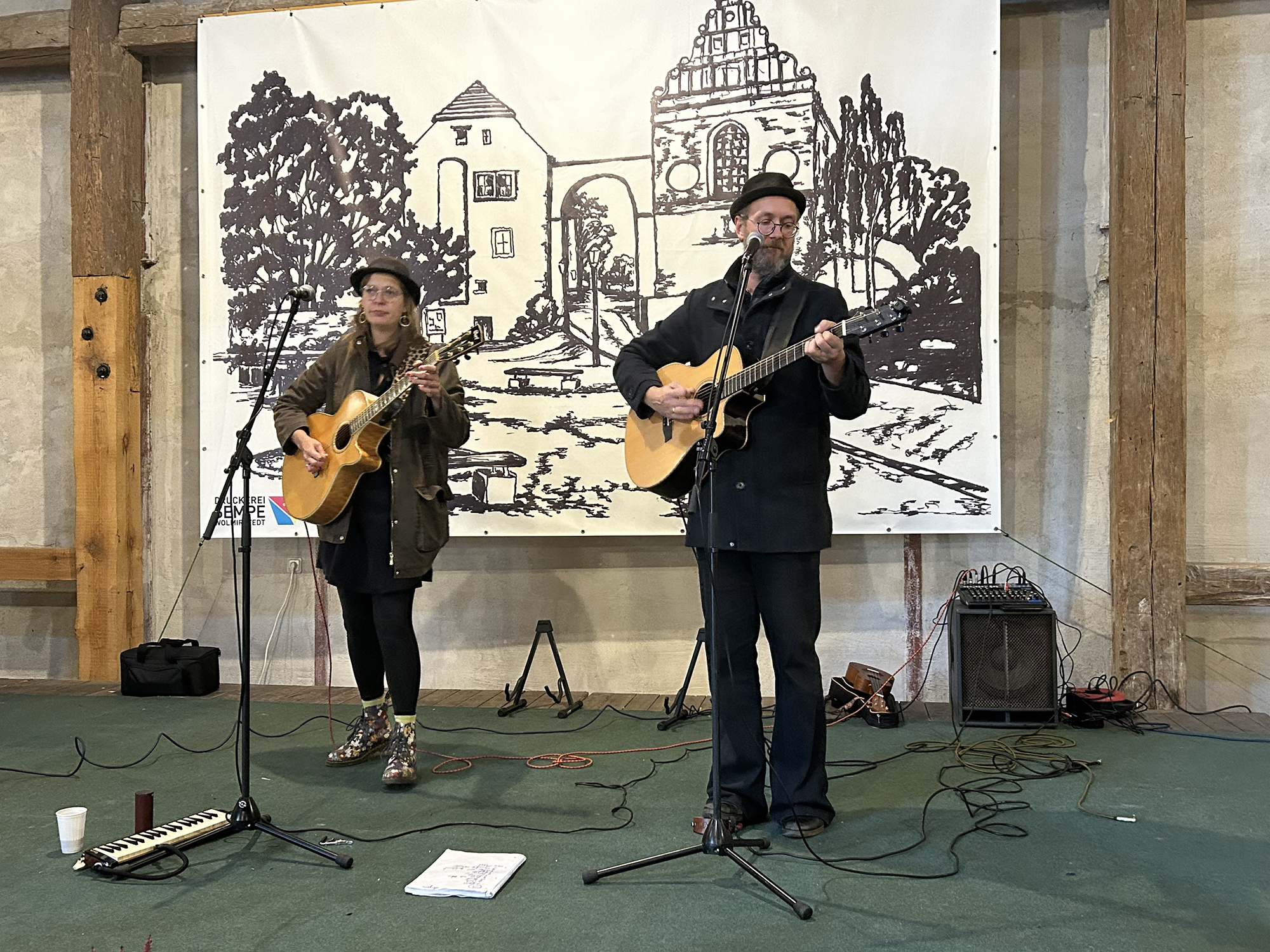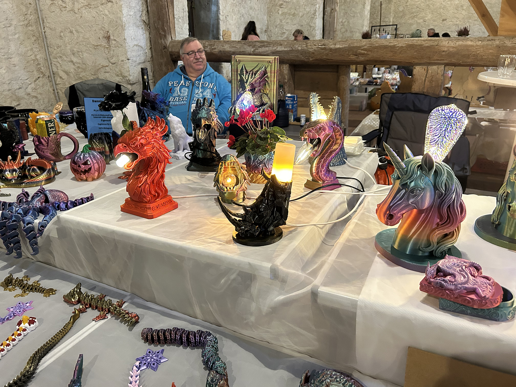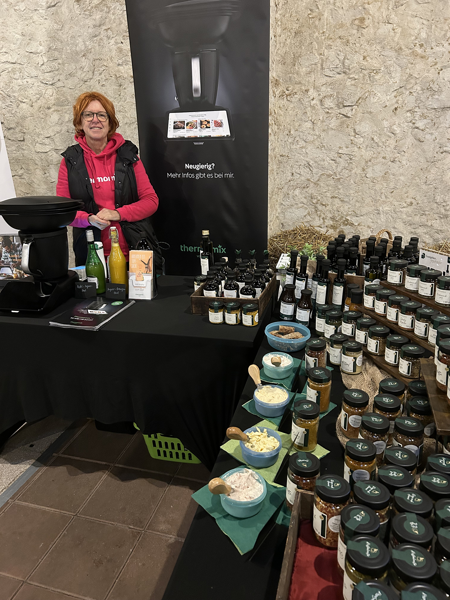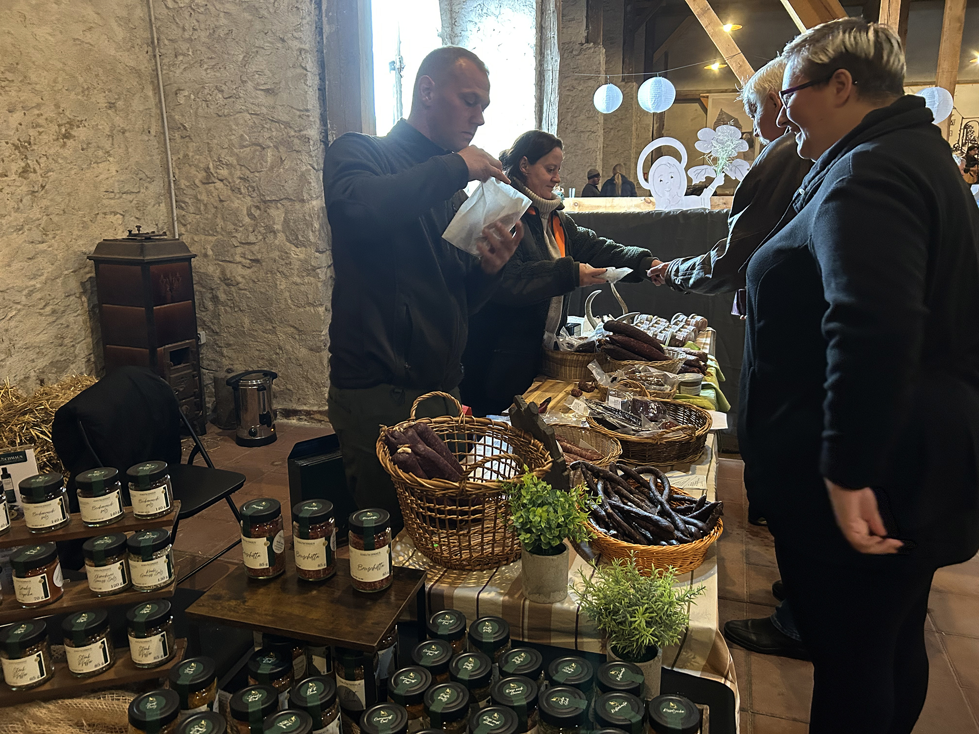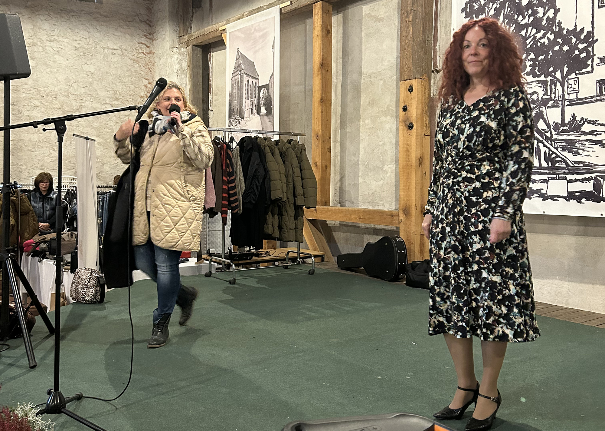 Deshalb verlegten die Verantwortlichen des Rathauses den Markt kurzerhand in die Museumsscheune, in der noch einen Tag zuvor ein Gemeinschaftssingen zum Tag der Deutschen Einheit stattgefunden hatte. „Das war die beste Entscheidung, so müssen wir nicht im Regen stehen. Unsere Waren hätten nicht nass werden dürfen“, kommentierte eine Händlerin das Geschehen. Zwar war es eine kleine logistische Meisterleistung, alle Stände, die zuvor auf die große Schlossdomäne gestellt werden sollten, in der Scheune anzuordnen. Doch schließlich konnten die Gäste trockenen Fußes nach Waren stöbern, essen und trinken und alle Angebote nutzen.